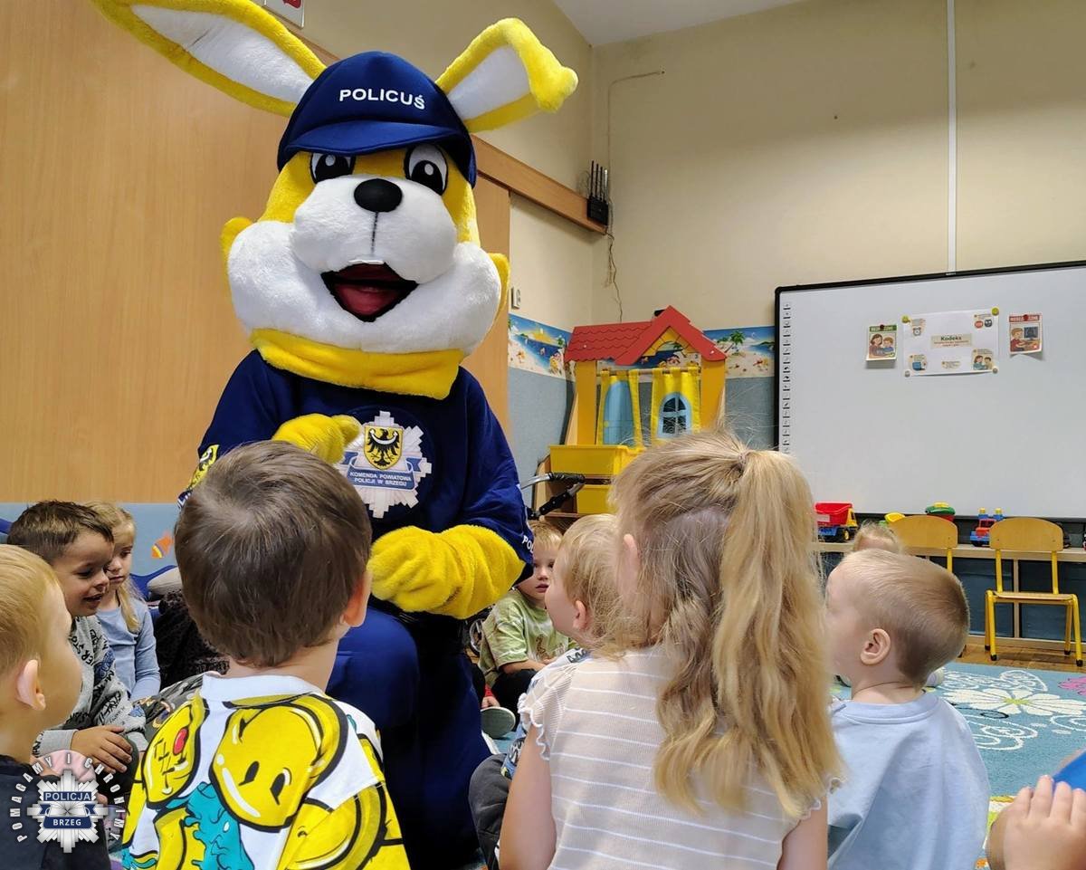 Policjanci z Brzegu spotkali się z przedszkolakami Przedszkola Publicznego nr 6 w Brzegu. Rozmawiali o bezpieczeństwie podczas wspólnej zabawy na podwórku i o tym jak unikać zagrożeń. Przestrzegali przed niebezpiecznym zachowaniem i rozmowami z nieznajomymi osobami. Oprócz pożytecznej wiedzy była również niespodzianka. Nasza policyjna maskotka – Policuś odwiedził dzieci by spędzić z nimi kilka chwil w przedszkolu.