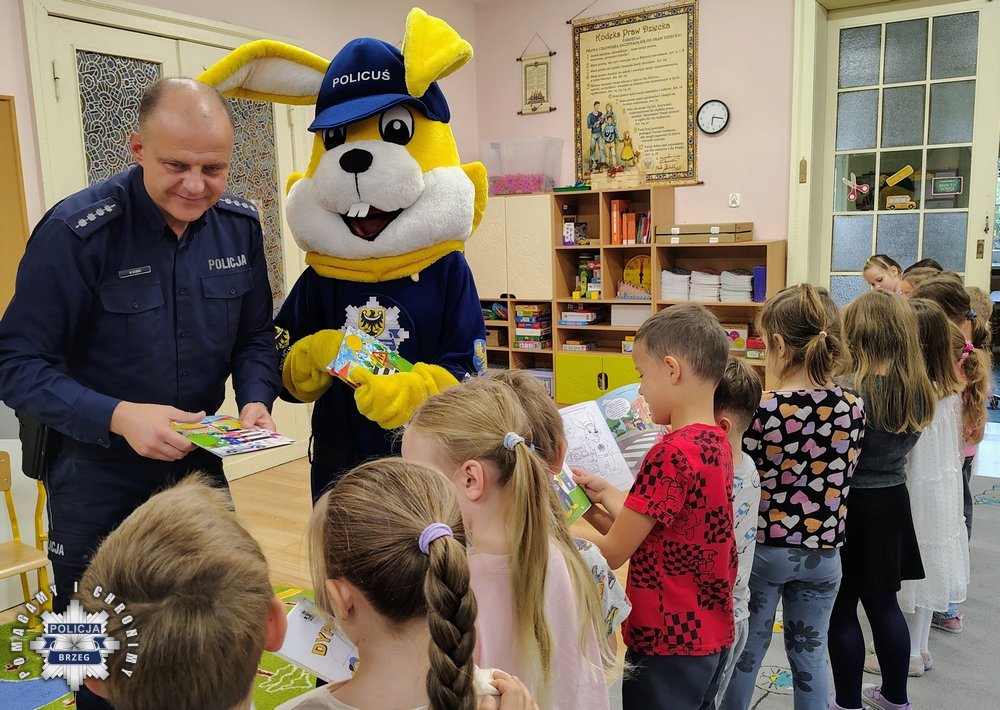Spotkania z najmłodszymi mieszkańcami naszego regionu to spotkania z uśmiechem na twarzy i świadomością, że edukujemy młodych ludzi. By dzieci mogły utrwalać swoją wiedzę otrzymały od policjantów książeczkę „Bezpieczny przedszkolak”, a w niej Policuś, który doradza jak się zachować w różnych sytuacjach.