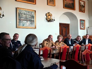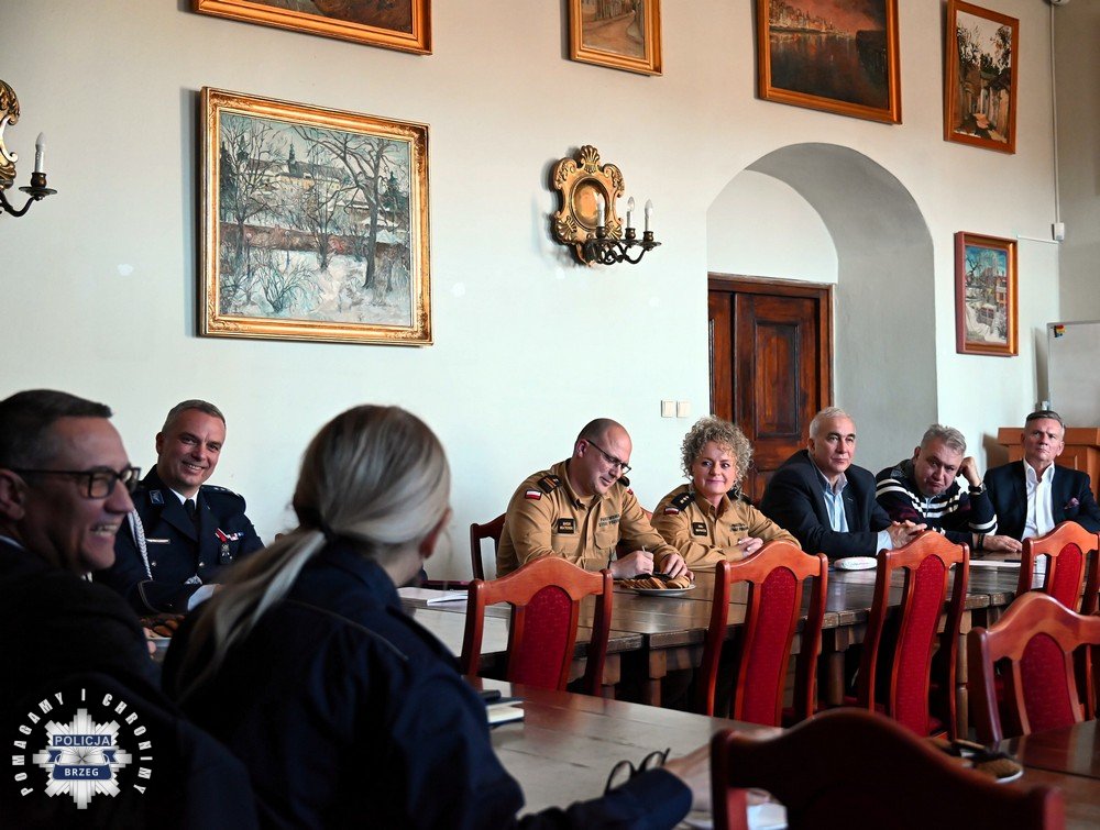 W rozmowach wzięli udział: Komendant Wojewódzki Policji w Opolu nadinsp. Magdalena Nguyen-Fudala, Starosta Powiatu Brzeskiego Jacek Monkiewicz, Komendant Powiatowy Policji w Brzegu insp. Michał Karoński, Burmistrz Brzegu Violetta Jaskólska-Palus, Burmistrz Lewina Brzeskiego Artur Kotara, Burmistrz Grodkowa Miłosz Krok, Wójt Gminy Lubsza Michał Marek, Wójt Gminy Olszanka Tymoteusz Drebschok, Zastępca Wójta Gminy Skarbimierz Bogusław Gąsiorowski, Kanclerz Wyższej Szkoły Humanistyczno-Ekonomicznej w Brzegu Stanisław Widocki, Prezes Banku Spółdzielczego Grodków-Łosiów Zdzisław Wojdak, Dyrektor Muzeum Piastów Śląskich w Brzegu Dariusz Byczkowski oraz Członek Rady Muzeum Piastów Śląskich w Brzegu dr Romuald Nowak. W spotkaniu wzięli również udział przedstawiciele straży pożarnej m.in. Opolski Komendant Wojewódzki Państwowej Straży Pożarnej nadbryg. Paweł Kielar.