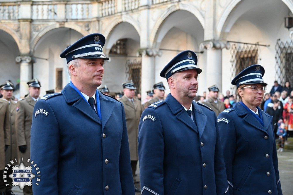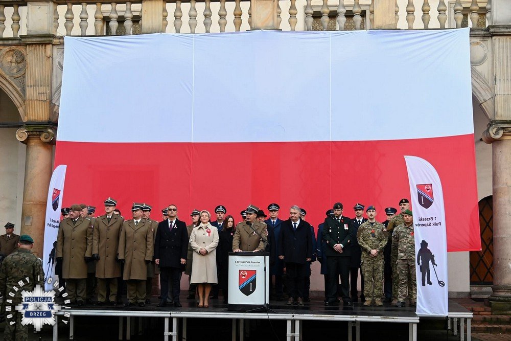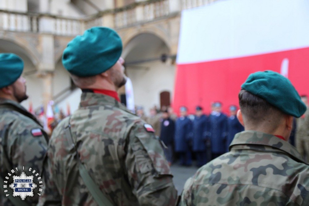 Zastępca Komendanta Wojewódzkiego Policji w Opolu insp. Zbigniew Stanowski wraz z Komendantem Powiatowym Policji w Brzegu insp. Michałem Karońskim uczestniczyli w powiatowych obchodach Święta Niepodległości. Tradycyjnie już obchody odbyły się na dziedzińcu Muzeum Piastów Śląskich w Brzegu. Święto licznie zgromadziło mieszkańców naszego regionu i zaproszonych gości, by wspólnie odśpiewać hymn państwowy i wysłuchać apelu pamięci naszych bohaterów.