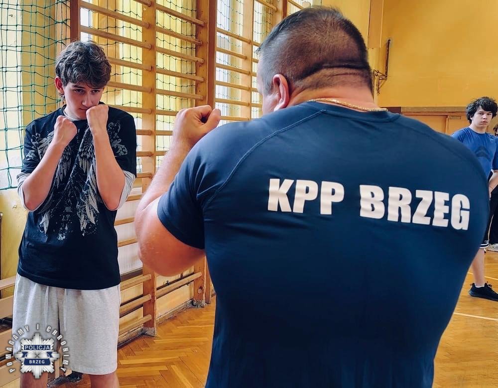 W minionym tygodniu odwiedziliśmy uczniów z Zespołu Szkół Zawodowych nr 1 w Brzegu. W ramach porozumienia i utworzenia w zawodzie technik informatyk innowacji policyjnej, kontynuujemy z młodzieżą zajęcia związane z służbą w naszych szeregach. Tym razem nasz instruktor taktyk i technik interwencji poprowadził zajęcia z podstaw samoobrony.