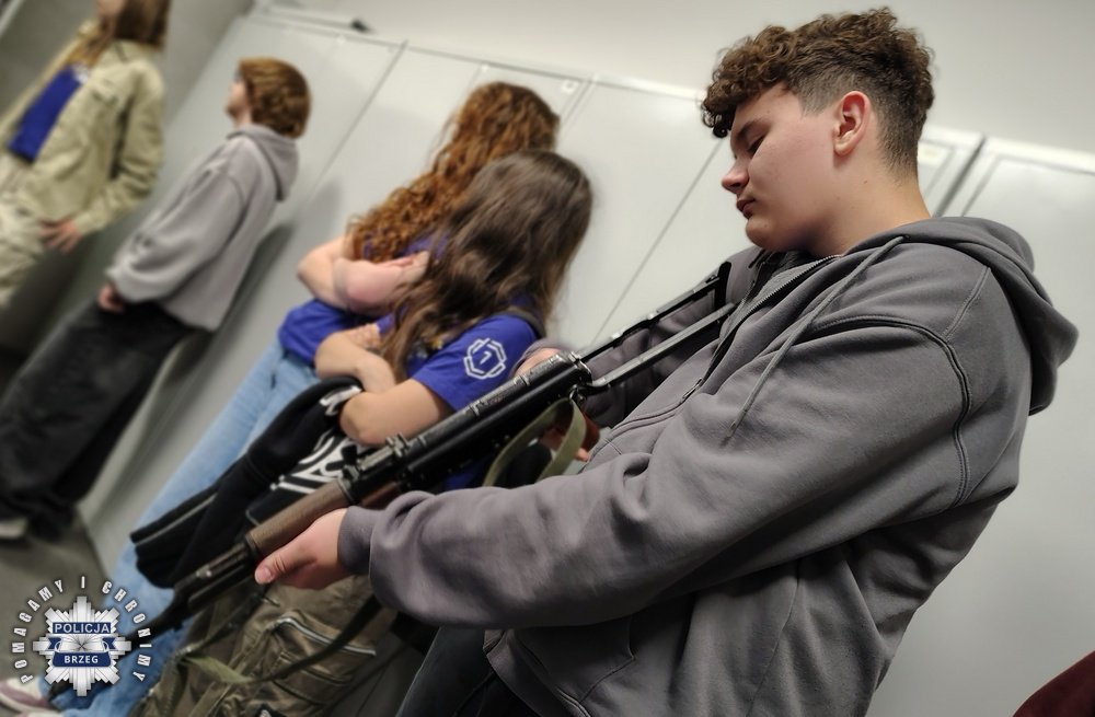 Kom. Krupiński przybliżył naszej młodzieży pracę funkcjonariuszy ruchu drogowego. Uczniowie zapoznali się z policyjnymi wozami, podstawowym ekwipunkiem przy zabezpieczaniu zdarzeń drogowych, jak również zobaczyć na jakich pojazdach i eksponatach młodzi policyjni kadeci poznają budowę pojazdów mechanicznych. Dużym zainteresowaniem cieszyły się także warsztaty z zakresu kryminalistyki, które poprowadziła podkom. Karpuk. Podczas zajęć młodzież poznała tajniki zabezpieczania śladów na miejscu zdarzenia oraz specyfikę pracy technika kryminalistyki. Kolejny blok dotyczył pierwszej pomocy. Pod bacznym okiem podinsp. Bartosza Saczki uczniowie ćwiczyli podstawowe czynności ratujące życie, które stanowią fundament pracy każdego funkcjonariusza. Ostatnim punktem programu były zajęcia na strzelnicy, prowadzone przez asp. szt. Piotra Galusa. Uczniowie zapoznali się z zasadami bezpieczeństwa obowiązującymi podczas pracy z bronią oraz wyposażeniem wykorzystywanym przez policjantów. Mieli okazję zobaczyć w jakich warunkach ćwiczą funkcjonariusze i poznać różne jednostki broni służbowej.